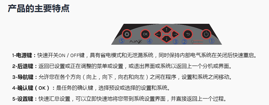 通過按下按鈕,控制鍵接口,抗沖擊和濕度工作,使您可以完全控制屏幕上設備的程序和設置: