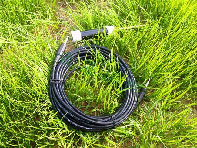 把箱子里的線頭直接插到地線插孔里面,把另一頭插到黑色的地線上然后把線放開。把黑色的地線插到離主機9米左右的地方。