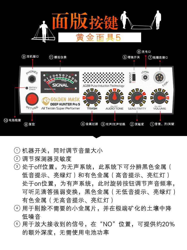 保加利亞黃金面具升級版PRO5大深度大范圍抗高壓脈沖金屬探測器